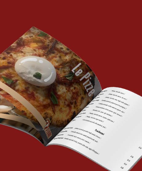 Il menù, progettato in formato quadrato, presenta un'impaginazione pulita e moderna. Ogni pizza ha un nome particolare, aggiungendo un tocco di creatività e divertimento all'esperienza culinaria. Questo menù non solo è funzionale, ma anche un elemento di design che rispecchia l'identità del locale.