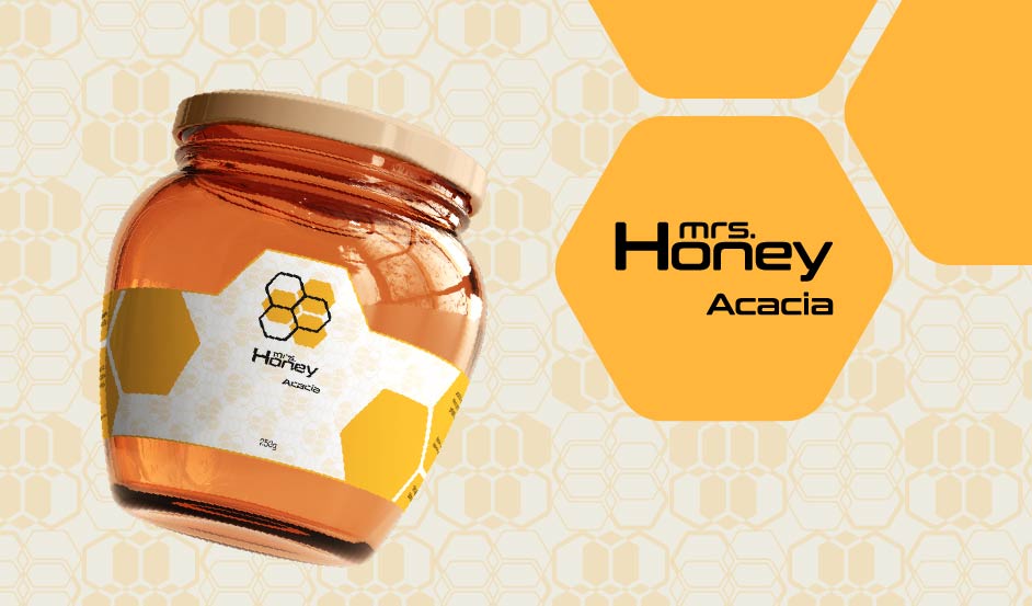 - Mrs. Honey: Miele di acacia in un vasetto cilindrico, stretto alla base e più largo in cima, da 250gr, elegante e raffinato.