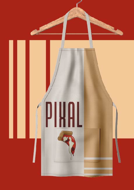 Ho creato cappelli e grembiuli brandizzati per i pizzaioli, rafforzando l'immagine professionale e coerente di Pixal.